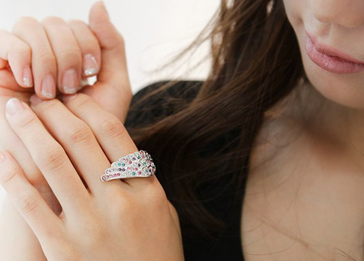 从手指可以看出一个人的内涵和品味,内心的表达,不仅仅在脸和嘴,手指间的语言胜过千言万语,女性独有的优雅和温柔,通过指尖的传达,读出无言的情感。精美戒指以其华丽的造型,闪亮的光芒,表现手指间更多的内涵,优雅的指尖语言更具有神秘的色彩,可以凝聚迷人的魅力哦。