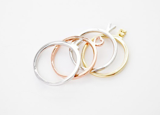 心里的话有时候要明白表达,深藏的爱要说出来,字母花戒在表达上一目了然,采用不同的金属,多层次指环的设计,新颖大方,具有特别的个性美。