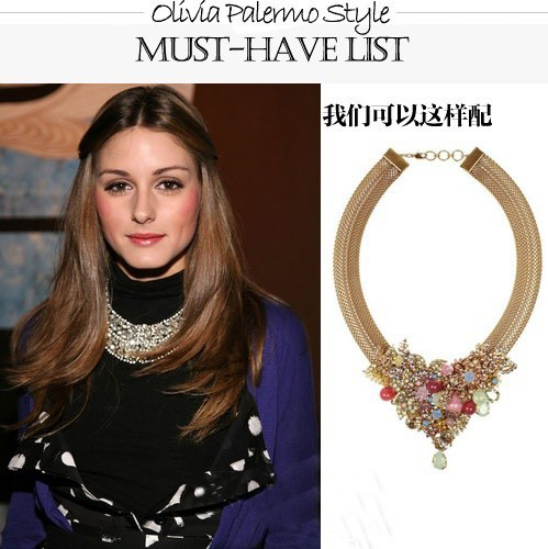 搭配深色衣服的时候,亮色的超宽项链绝对是首选,立刻出现“名媛范”。