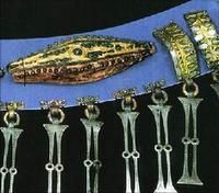 这些首饰上镶嵌的宝石在被埋藏之前都已经被撬下来,或许宝藏的主人觉得宝石价值高而且容易携带。另外宝藏中还有令人瞠目结舌的重达250公斤的纯金块。