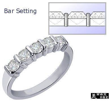 这镶嵌方法与坑镶类似,但钻石之间以金属分隔,并由左右的金属棒迫紧固定。