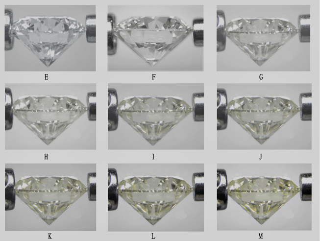 重点介绍H色,H色是行业内认为白色钻石(优质钻石)的分界线,通常认为H色以上基本是看不到黄色调的。