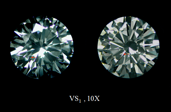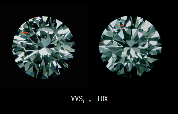 VS级别内含物比VVS大,10倍镜下专业钻石分级师较难发现,VS2级内含物比VS1多