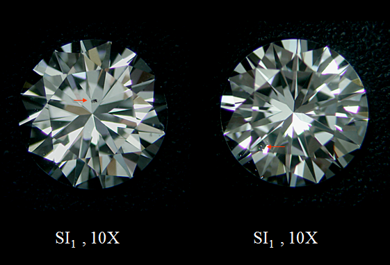 SI级肉眼看不到内含物。因此购买钻石时SI级别以上的肉眼是无法分辨出其差别来的。
