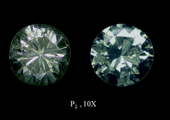 目前商场中凡是有分级的钻石少见P级的钻石销售,如有较大钻石(30分以上)而鉴定证书上确未标明净度级别,多半是净度级别较低,商家担心影响销售未标明的缘故。