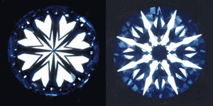 形成完美八心八箭对钻石切割比例、对称度要求极高,因此很容易与国际切工评价体系中的参数范围相冲突,因此往往很多具有八心八箭的钻石达不到3EX完美切工的标准,但这并不影响我们对他的推崇和喜爱。