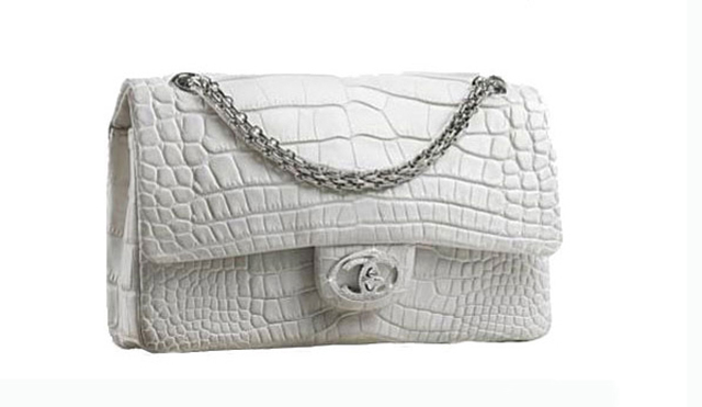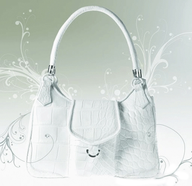 Gadino这款白色鳄鱼皮手袋可谓杰作,乍看之下只是精巧秀气没有特别之处,仔细瞅瞅就能发现设计师Hilde Palladino匠心独运镶嵌在包包各处的39颗耀目白钻了。