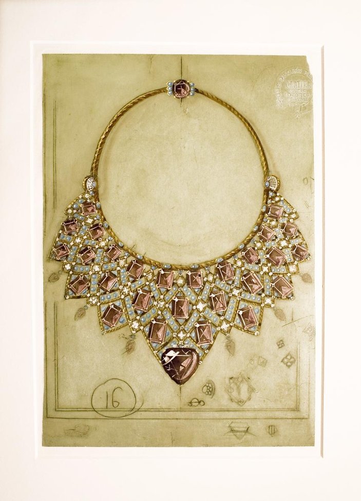 (为印度土邦主自藏珠宝重新打造的项链手绘图)