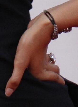 “绝望主妇”伊娃·朗格利亚(EvaLongoria)的婚戒由一枚由珠宝设计师JeanDousset设计、重达5克拉的祖母绿琢磨花样钻戒,上面镶嵌247颗钻石。