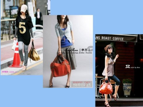 2、侧背皮包的肩带不要过长,会使视觉重心下移,显得更矮。
