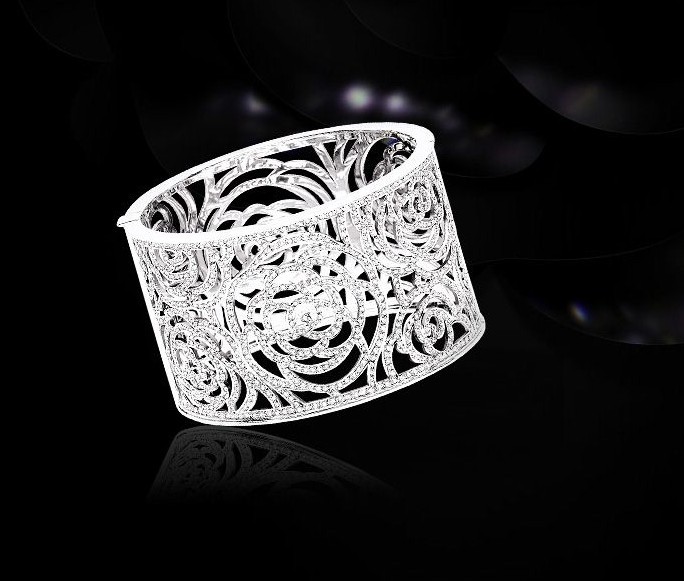 香奈儿(Chanel)高级珠宝全新Camelia Brode系列,镶满钻石的山茶花、蝴蝶结形香奈儿高级珠宝,在黑色背景的衬托下悄然绽放,清冷纯洁的氛围中满溢着奢华光芒。山茶花,在香奈儿(Chanel)珠宝的细腻捕捉下,以珠宝为字,犹如写下一首首赞美诗般,赋予名媛仕女耀眼风采。