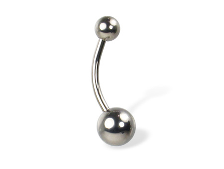 肚脐环大多是半弧形的,因此也常被称为“香蕉环(bananabell/bananabar)”。通常是两头钉,上面一个小的,下面一个大些的。标准的香蕉环是1/16英寸宽,3/8或7/16英寸长的,上下两头的圆钉一般是5毫米和8毫米直径。当然,现在的肚脐环早已发展得多种多样了。