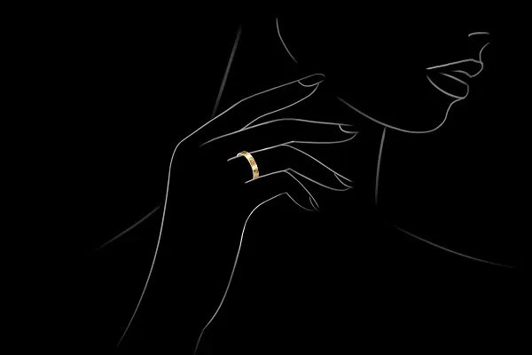 18K黄金婚戒,镶嵌8颗钻石。宽4毫米