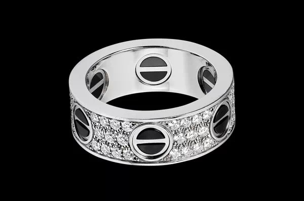 白18K金戒指,密镶钻石,黑色陶瓷。