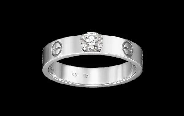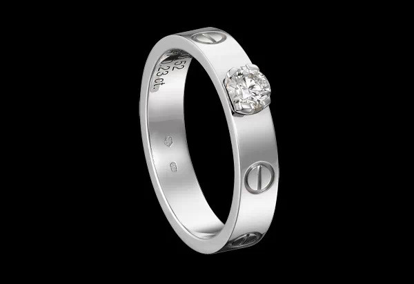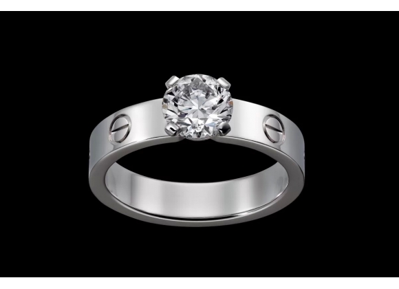Love订婚钻戒,白18K金,镶嵌一颗圆形明亮式切割钻石,0.23至1.00克拉钻石可供选择。