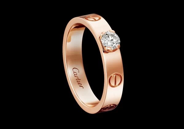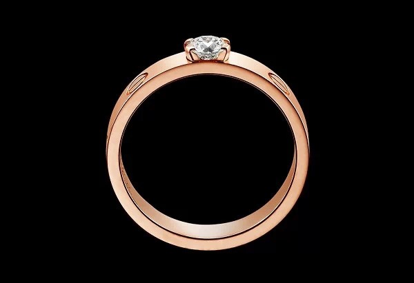 Love订婚钻戒,18K玫瑰金,镶嵌一颗圆形明亮式切割钻石,备有0.23至0.29克拉可选。