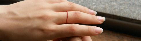 图2 用线绳绕手指一圈,得出周长,在上表中找到相应的戒指(港码)号数。因为手指骨节处略大于手指戴戒指的地方,所以线不要绕的太紧。
