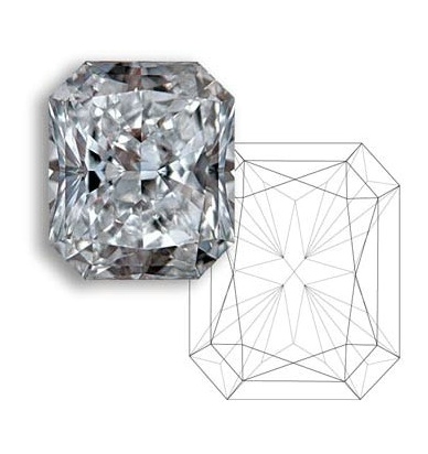 外形:矩形切工:混合型起源:1977年Radiant切工发明于1977年,匠人希望综合祖母绿切工的优雅外形和圆形切工明亮度,而创出此种切工。Radiant拥有长方形外形和切去的四角。它兼顾了祖母绿切工较高的原石留存率和易搭配的形状,也拥有如圆形灿烂型切工的优秀光芒表现。Radiant切工适合略显长方,四角有破损和瑕疵的原石,原石留存率较高。镶嵌时至少应以四爪镶嵌的形式来固定四个被切除尖角的部分,以保证镶嵌的牢固安全。