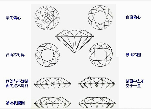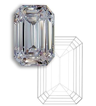 外形:矩形切工:阶梯型起源:古代典型阶梯型切工的衍生加工方式,所有切面均平行或垂直于钻石的方形外腰围,外形呈矩形,亭部和冠部较扁,底尖收成线状。因常用于宝石祖母绿的加工,故名。使用祖母绿切工的钻石,较难遮眼包裹体,适合净度较高、长方形、边角略带破损或包裹体的钻石原石,其原石留存率可达60%至70%之高。外形轮廓要求:注意切去四角的大小、线面必须严格平行。