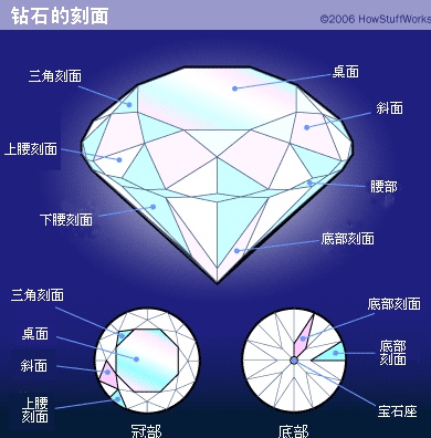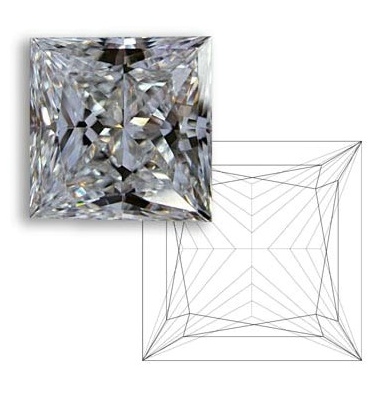 外形:方形切工:明亮型/灿烂型或混合型起源:上世纪中期,由比利时工匠发明,此种切工被不断完善,衍生出一系列改良形式。由于其改良形式兼有阶梯型切工的特点,所以也可归类于混合型切工。方形切工拥有方形或长方形外形,通常有76个刻面。但也有61个、101个刻面或144个刻面的。其中101刻面的方形明亮型切工为E.F.D.钻石公司的注册专利切工,即公主方。方形切工可多样化,但普遍冠部较浅,台面较大,亭部较深。此种切工原石留存率高于其他明亮型切工方式,但不适用亭部较浅的钻坯。尖角处和亭部刻面产生的亮度和闪烁降低了包裹体的可见度,也稍“提高”了钻石的颜色级别,并且同样重量的方形切工钻石与圆形切工钻石相比,外形显得要大15%左右。方形的外形适合用于钻石紧密排列的无缝镶嵌,这是其他形状的钻石所无法做到的,但镶嵌时需要保护尖角。