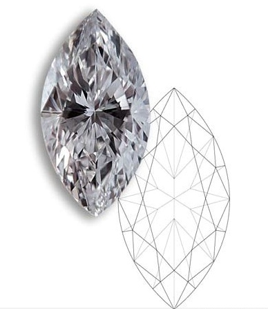 外形:榄尖形切工:明亮型/灿烂型起源:17世纪,法王路易十四时期也译为马眼钻或者舟形切工。此种切工的钻石两端都呈尖角,形似果核,故名。有领结效应。这种切工的原石留存率较低,其特色在两端尖角处,此处的包裹体能够被较好地遮掩,并且尖角处的闪亮度极高。镶嵌时需要注意尖角处的保护。外形轮廓要求:尖角对称、无缺损