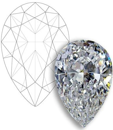 外形:梨形切工:明亮型/灿烂型起源:17世纪 也称为泪滴形切工(Tear Cut)或者坠形切工(Pendloque Cut)有领结效应。梨形切工在法国路易十四时期十分流行,历史上著名的钻石中有将近20%使用此种切工,包括世界上最大的钻石:库里南一号(Cullinan 1)。此种切工适合加工一端边角有破损或者瑕疵的钻石原石。镶嵌时需注意尖角处的保护。外形轮廓要求:两侧翼对称,尖角无缺损