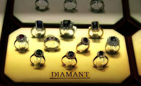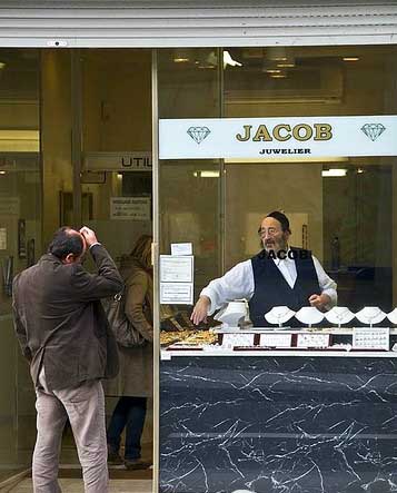 中心火车站前的帕里克大街上是清一色的珠宝首饰店。上午10点过后,首饰店陆续开门迎客,店家们忙着将锁在柜子里的珠宝首饰一盒盒摆上橱窗。一家首饰店的店家是个头戴凯吧小圆帽的犹太人。