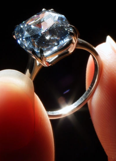 在2009年苏富比日内瓦拍卖会上,一颗完美无瑕的蓝色钻石售出950万美元。钻石为长方形,重量为7.03克拉。