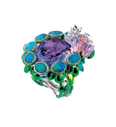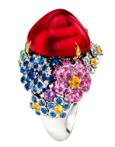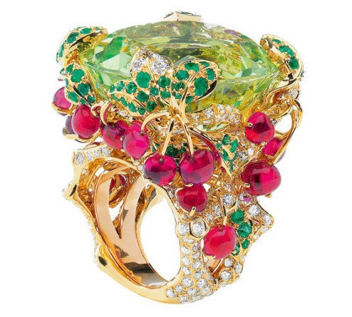 一枚色彩浓艳的鸡尾酒戒举手投足之间都是奢华高贵。绿色的清新、紫色的魅惑,橘色的独特、蓝色的淡雅,花团锦簇的鸡尾酒戒处处细节皆是风情,俯拾间种种都为诱惑。CocktailRing的华丽风格能极好的诠释首饰的装饰性,与服饰的搭配效果很出彩,所以诸如Dior,Chanel,Chopard,Piaget等大牌都推出很多鸡尾酒戒。