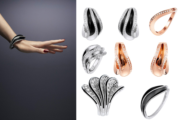 晚间9点的塞纳河岸,涓涓细流、波澜不惊。犹如一条微光浮动的钻石项链缠绵于左岸与右岸。锦衣夜行的巴黎女子指甲上燃着惊心动魄的一抹丹蔻红。水波状的曲线像塞纳河之水动情摇曳,黑漆与钻石,大胆凛冽的光与影,悱恻在她的耳垂、手腕及颈间,眼波流转便倾了城。