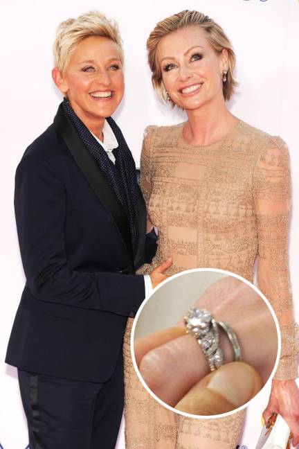 No.12 波西亚·德·罗西(PORTIA DE ROSSI)波西亚与著名脱口秀节目主持人艾伦·德杰尼勒斯(ELLEN DEGENERES)曾在2009年美国娱乐界最佳夫妇调查中意外击败皮特和朱莉排名第一。而德杰尼勒斯正是用这枚3克拉的钻戒完成了著名的蕾丝求婚。