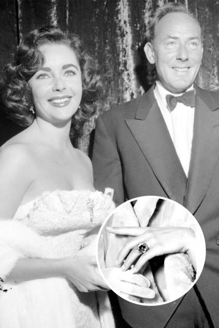 No.25 伊丽莎白·泰勒(ELIZABETH TAYLOR)世界头号美人泰勒的一生中最不缺的就是男人与珠宝,迈克尔·瓦尔汀 (Michael Wilding)是她的第二任丈夫,尽管二人只有短短的五年婚姻,当年的订婚戒指至今仍被津津乐道,这枚超大的凸圆蓝宝石戒指在泰勒手上熠熠生辉,显出动人光芒。