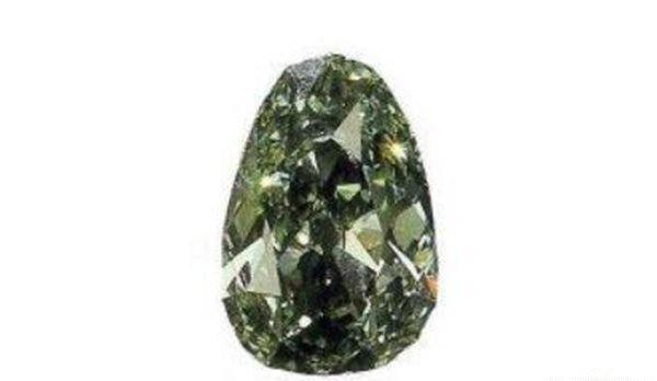 梨形的德勒斯坦钻石,是已知世界上最大的绿色钻石,重41克拉。