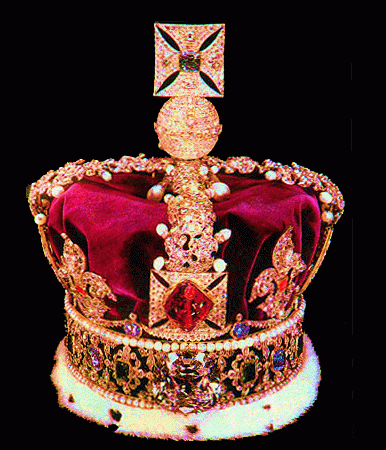 英帝国王冠上镶有著名的"黑王子红宝石"(王冠中部正中,红色),世界第二大钻石"非洲之星第二(王冠下部正中,比黑王子红宝石大)"和圣爱德华蓝宝石(王冠顶部十字架中心),王冠上共镶有4粒红宝石、11粒祖母绿、16粒宝石蓝、227粒珍珠和超过2800粒大大小小的钻石。
