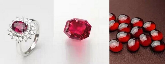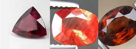 红宝石、尖晶石、石榴石(从左往右,下同)