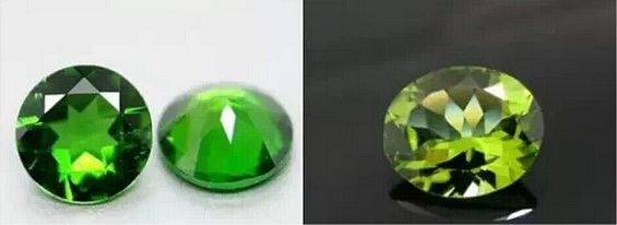 传统的绿色宝石是祖母绿,也有沙弗莱石(一种石榴石)、铬透辉石。橄榄石更像是橄榄绿色。