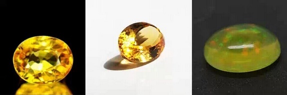 蓝宝石、黄水晶、火欧泊