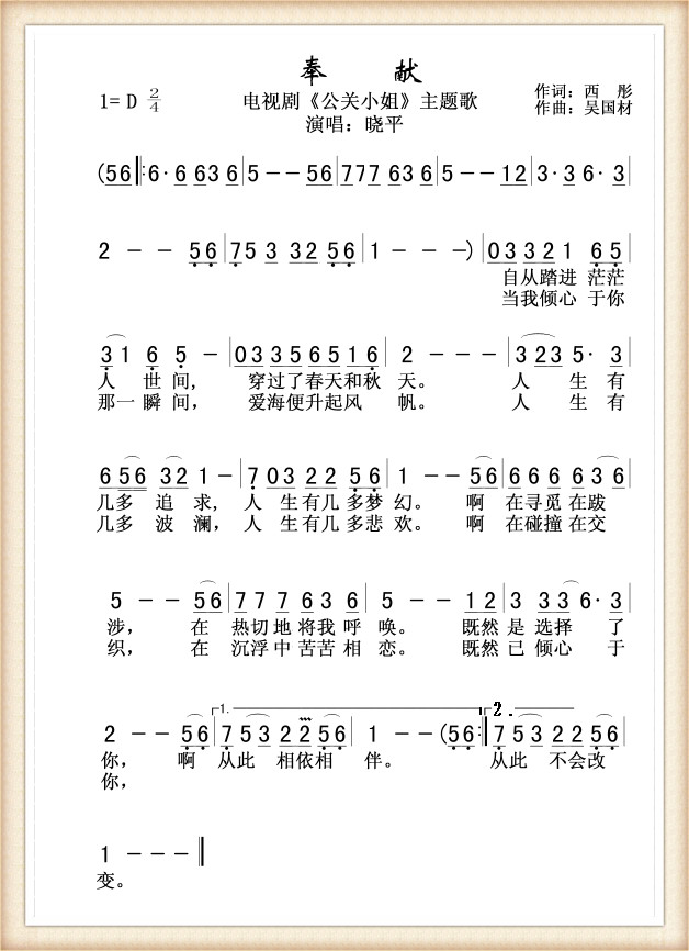 电视连续剧《公关小姐》插曲--《奉献》粤语版(张咪)