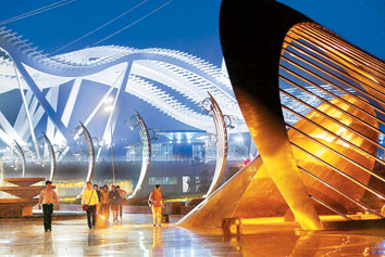 另外,外滩公园上最抢眼的大、中、小三组结构大悬挑构架"碧海帆影",自西向东分别高达100米、70米、50米,分别矗立在第一、第二、第三景区内,三个构架像大海中航行的帆船,与蔚蓝的海河水相映成辉。龙舟赛前,著名的"东方公主"号游轮还将落位外滩公园对岸,彼此间遥相呼应,相映成趣。