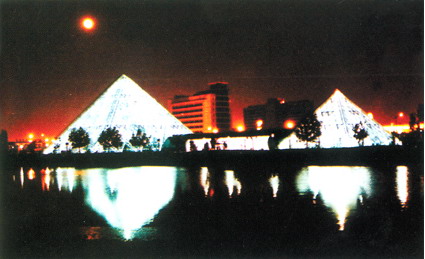 泰达热带植物园:北与天津市"新十景"―――泰丰公园相接,占地面积27000平方米,总面积5553平方米,由一个大金字塔和一个小金字塔及中间连廊组成,总体分为"绿色呼唤"―――沙漠植物展室、"人与自然"―――科普教育展示和"梦中花园"―――以亚热带植物为主的四季花园。整个植物园现代化、智能化水平很高,人们可以通过电子设备观看到整个地球上的植物和自然景观,相当于把整个自然界搬到了泰达。