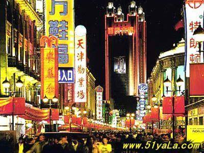 下午:出来古文化街(顺原路回来)向南走一直下去就是***就十分钟吧!如果是南方人的话可以去广东会馆看看有回家的感觉哦!而且***是以前天津的中心。除了***可以向东走就是天津食品街了,又可以大吃一顿了!很多小吃,在这里推荐一个小菜馆在外围,只有肉加烧饼很好吃!问问本地人应该知道的!出来食品街继续东走(你可以问下人,但是不过不累别坐车哦)就20分钟,金街是和平路和滨江道组成的,里面有许多老的建筑,而且是英,日,法的交接处。顺着滨江道一直下去就是老西开教堂,在路口望过去就好了呵呵!过了马路就可以看到了!老西开是法式建筑,浪漫色彩。