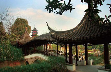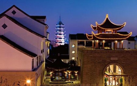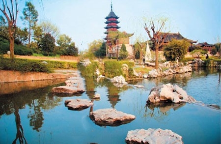 盘门是古苏州的水陆要冲,坚固的城楼上至今炮台雄立,旌旗烈烈。千年的瑞光塔、水陆城(盘门)、吴门桥高低错落,构成盘门三景,政府将这几个零落的景点“盘成一园”,新添了轩廊馆阁,一池三山的姑苏园,这样一盘的好处在于,既不失古园林的格局,又没有盆景感,转遍景区,差不多要1个多小时,而且游人不多。伴着一枚咸蛋黄落日,独自走过柳花飘飞的双亭廊桥,不用穿古装,也能体会古人那份闲散诗情。