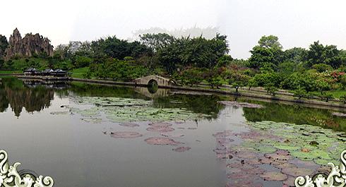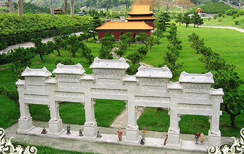 中国各地景点的缩小版,园中的近100个景点均按中国版图位置分布,全园犹如一幅巨大的中国地图,虽然精度比不上当地的实景,但让人能在几十步的范围内从感觉肃穆庄严的明十三陵到畅游如诗似画的漓江山水,从瞻仰海拔最高最宏伟的布达拉宫到体验险峻挺拔的长江三峡,从仰望最大的佛像乐山大佛到饱览最长的石窟画廊敦煌莫高窟......将祖国的大江南北在几个小时之内尽收眼底,倒也方便快捷。