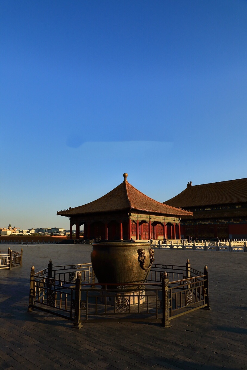 中和殿,紫禁城前朝唯一的方形建筑,单檐四角攒尖顶,顶上安装铜质镌花鎏金圆宝顶。