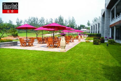 东方红是个酒窖,但不仅仅是喝酒的地方,比如还可以吃饭,并且是坐在有山有水有草地的户外餐桌上吃饭。远望可看到通惠河,近看有花花鸟鸟在整个会所的空地上玩耍,一派世外桃源的感觉。