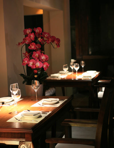 于二楼包间内小坐,看着玻璃酒窖里的佳酿,赏心、悦目,又满足胃蕾。于喜欢高雅的男女而言,这里当然隐藏着许多优质品种,或许不经意间随便一望也会落得个四目相对,亦或有段美好回忆开始。初到茉莉,漫步在落满红色光晕的餐厅回廊时,一定会觉得似曾相识。没错,这里就是《非诚勿扰》里葛优和冯远征“相亲”的地方。而电影里那句经典的台词也早就成为了这里服务员们最津津乐道的开场白了。