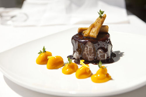 酒窖的外观主打苏州园林主题,所以在欧式的建筑外观的一层是小家碧玉的小桥流水,喝茶吃美食再合适不过。餐厅西餐推出了春夏新菜,都是养生养颜养胃的时令美味,如自制香草三文鱼佐芒果,用香草酱浸过的三文鱼多了一丝淡淡的清香,再配上夏季最香甜的芒果,吃起来爽口清香。牛肉方面也推出了全新的牛柳塔配芥末调味汁,澳洲谷饲牛肉被做成塔状,上面一层酸黄瓜再加上法国芥末汁,一口下去胃口大开。番红花炉烤鳕鱼佐菠菜,鳕鱼在炉中被烤制得外焦里嫩,配上番红花汁后口感丰富,入口爽滑。除此外,整个会所还有两个露台,一个是可直接看到通惠河边的酒廊,适合晚上消磨时光,酒吧也推出了夏季新饮品,比如用杨梅汁调制的梅之絮语,用柠檬草和各式水果粒做的柠檬草特饮,以及清凉的加勒比鸡尾酒,都是好看又美味,没有酒精适合开车来的食客。隔壁还有一个露台,用来做BBQ这样的特别活动。三个露台,可供你的一切夏季户外饕餮梦。