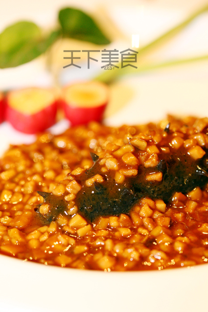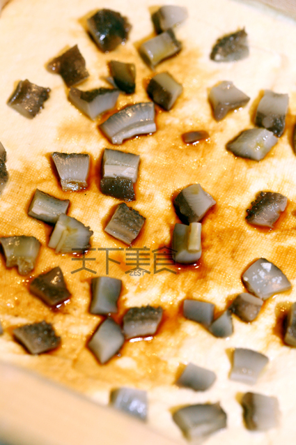 豆腐是由餐厅自己磨的豆浆、手工制作,口感非常嫩,海参则口感弹牙。