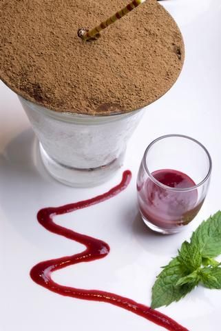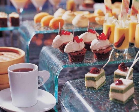 意大利甜点。包括巧克力英式松饼、提拉米苏、意大利奶冻、泡芙、水果拼盘和果汁冰糕。其中,巧克力英式松饼的外层是巧克力核仁饼配胶糖,热巧克力浆包裹其中。意大利奶冻的香草奶油味很浓。
