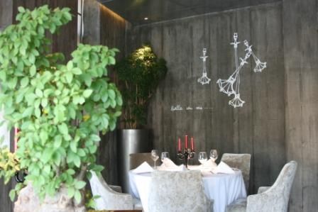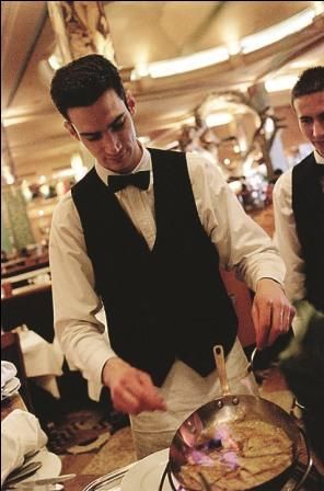这家餐厅环境幽雅,餐台硕大,全金属开放式厨房很像一间酒窖。